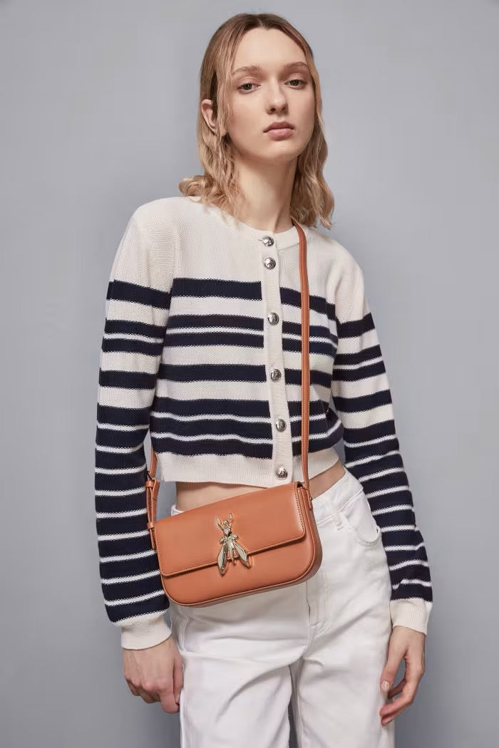 Un accessorio pratico e super chic per completare i tuoi look quotidiani. La nuova borsa a spalla in pelle presenta chiusura a calamita arricchita dalla splendida Maxi Fly. Tracolla regolabile con fibbia.