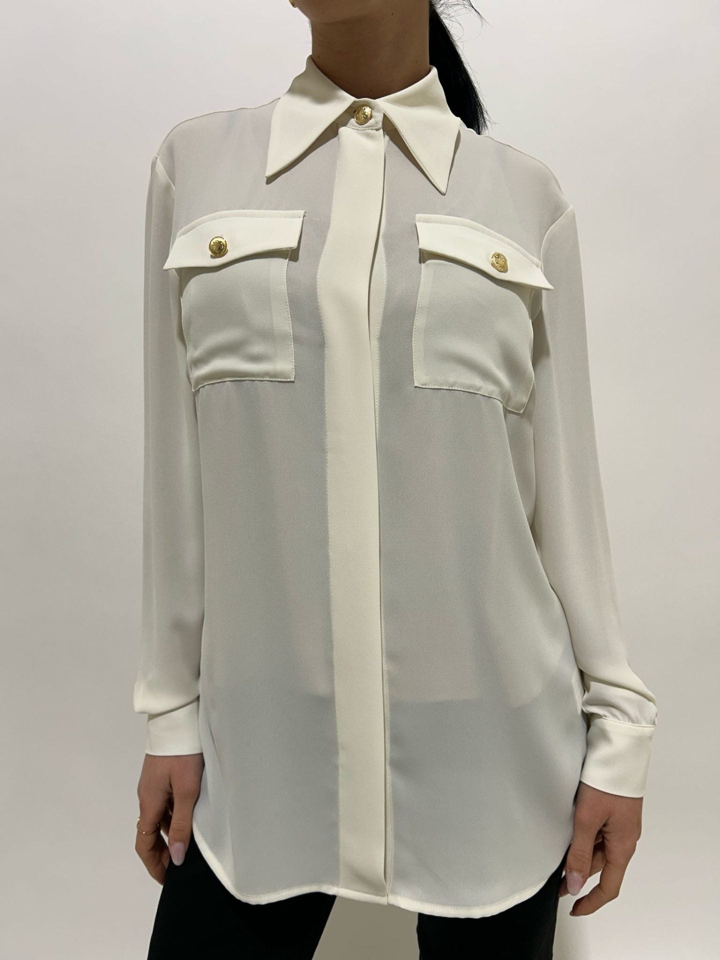 Una camicia dal taglio moderno e senza tempo, pensata per valorizzare ogni silhouette con classe ed eleganza. Il tessuto fluido e leggero accompagna i movimenti con naturalezza, mentre i bottoni dorati regalano un tocco sofisticato e luminoso che impreziosisce ogni look.