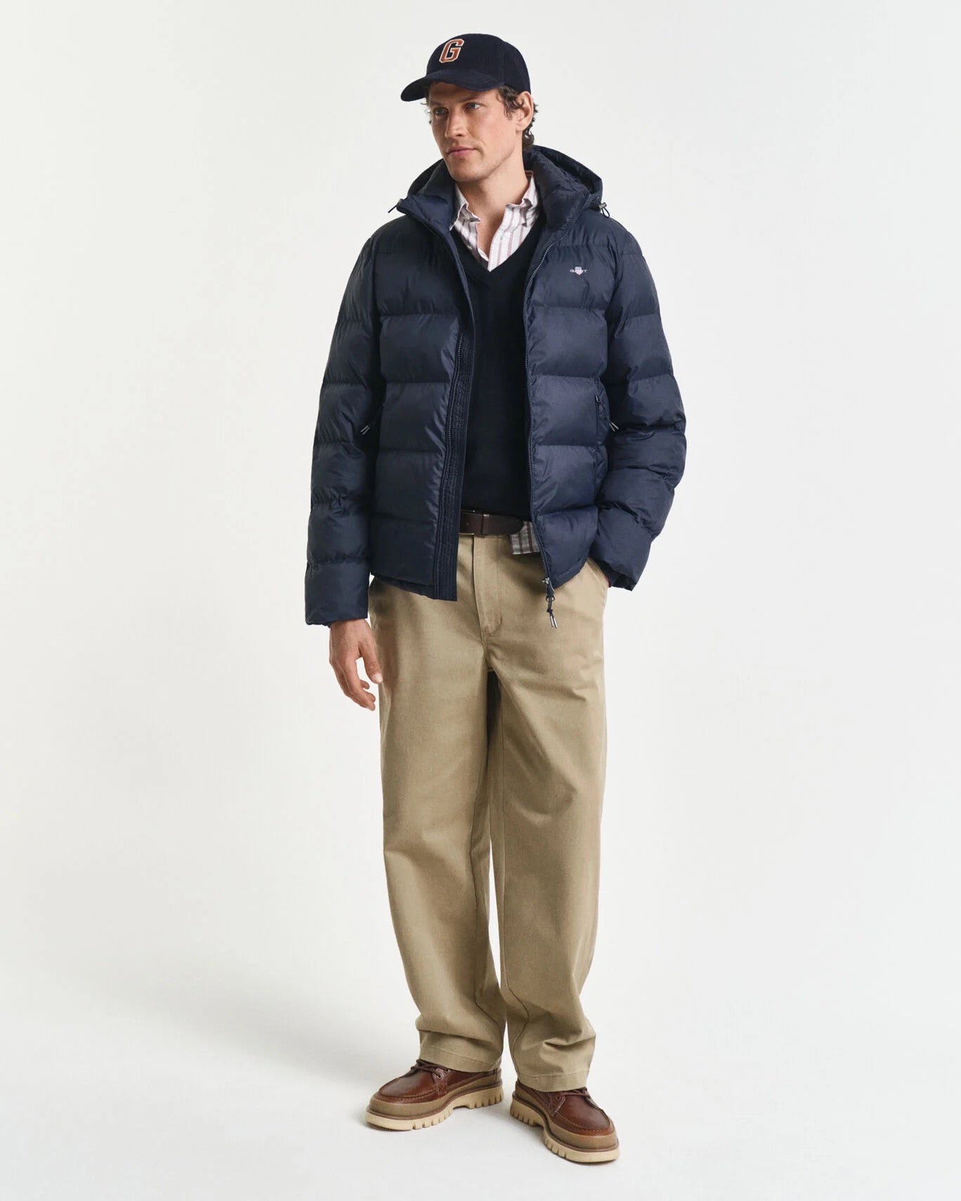 Perfetta per le giornate all’aria aperta, la giacca Active Cloud è lunga fino ai fianchi, pensata per una vestibilità regular e trattata con una finitura idrorepellente. La giacca riprende il modello dei piumini imbottiti e presenta un interno completamente foderato, cappuccio rimovibile e tasche laterali all’americana con zip. Comprende inoltre un’elegante chiusura con zip frontale, polsini antivento e grafica GANT ricamata sul petto. Il capo presenta un trattamento DWR (durable water repellent) che aiuta a disperdere l’acqua in caso di pioggia leggera.