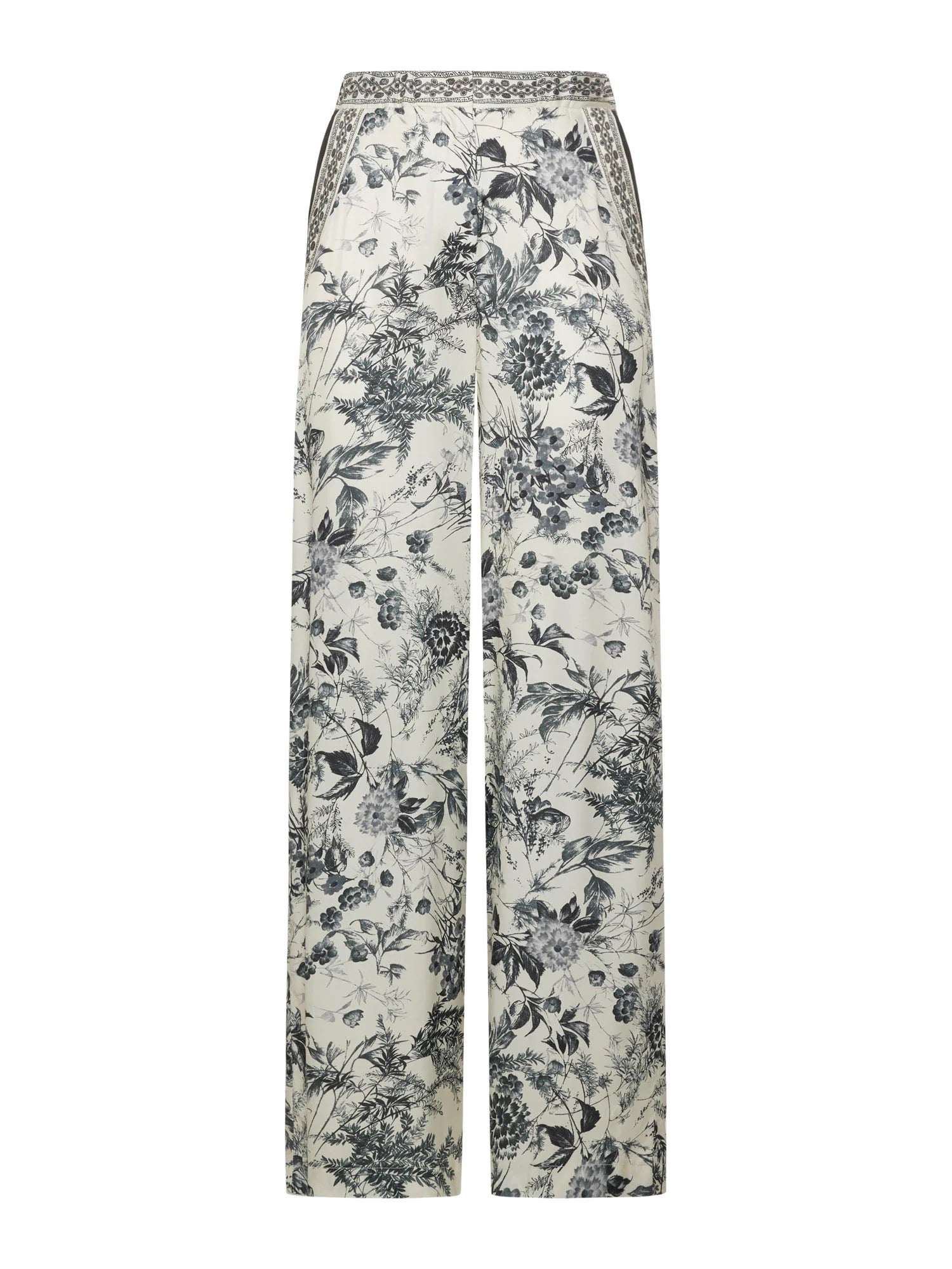 Pantalone largo in stampa flower ink con tasche alla francese, fascione sul davanti ed elastico in vita sul dietroAltezza modella: 178 cm - Taglia indossata IT40