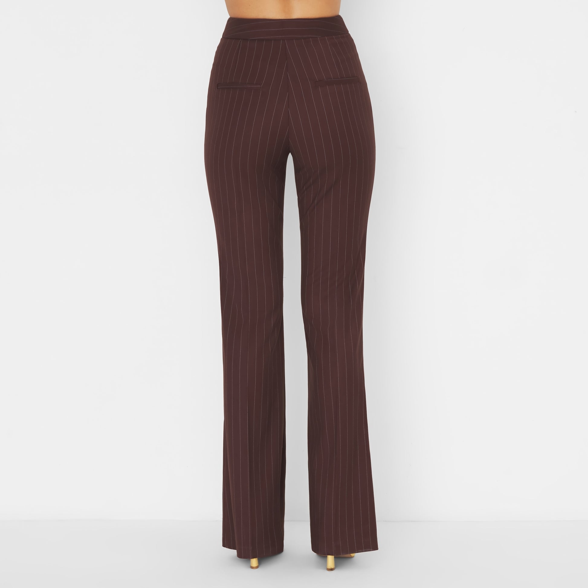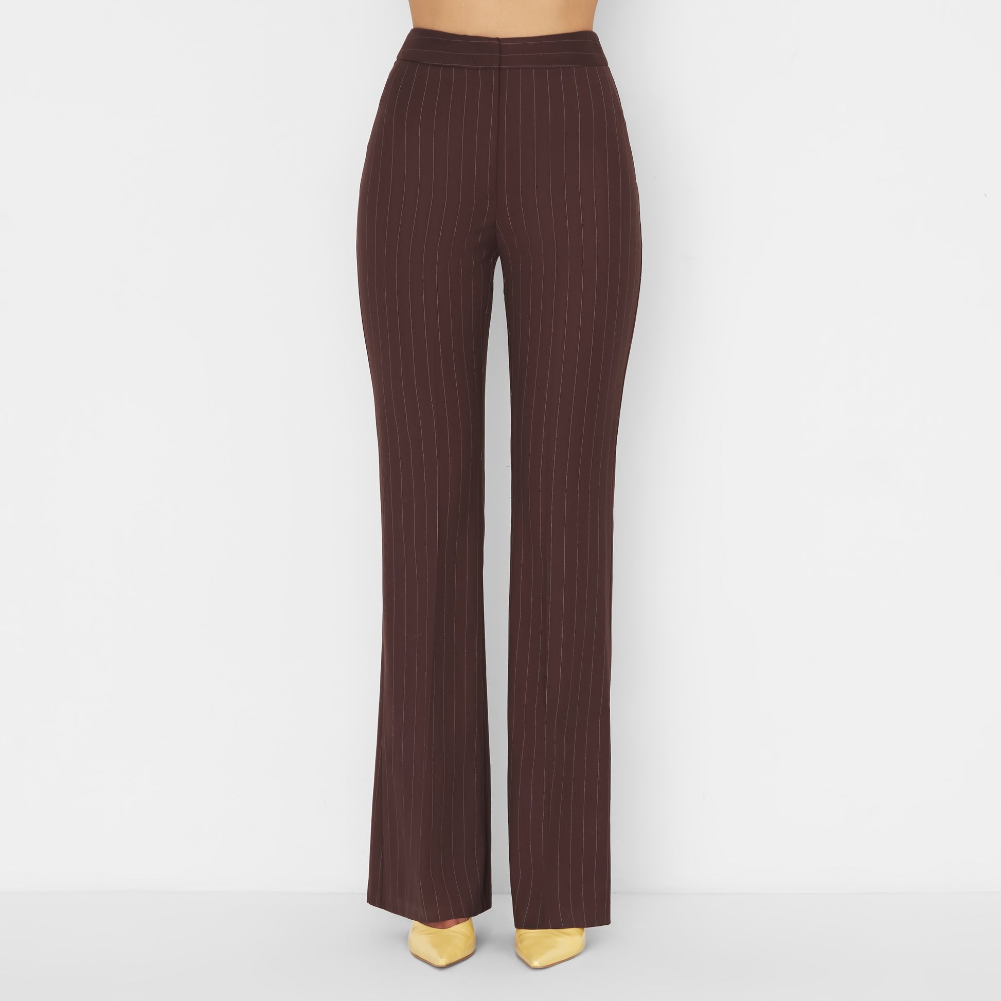 La tonalità marrone cioccolato con righe sottili e la vita alta rendono questo pantalone un must-have per chi ama distinguersi con discrezione e classe. Indossalo con la giacca coordinata per un completo “power suit” firmato Silence Limited.
