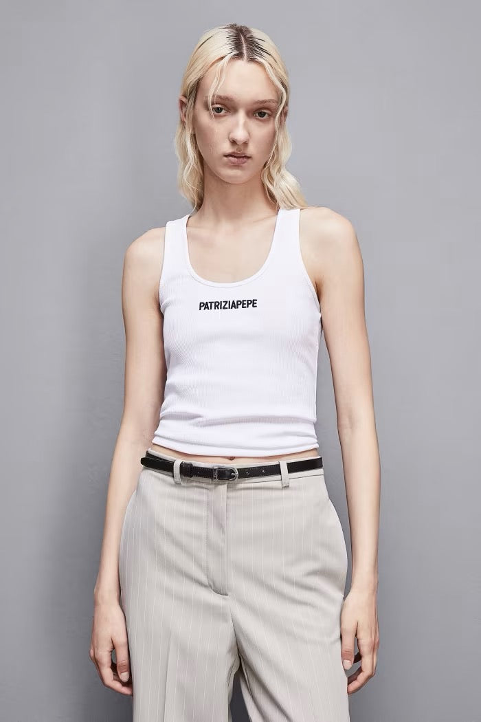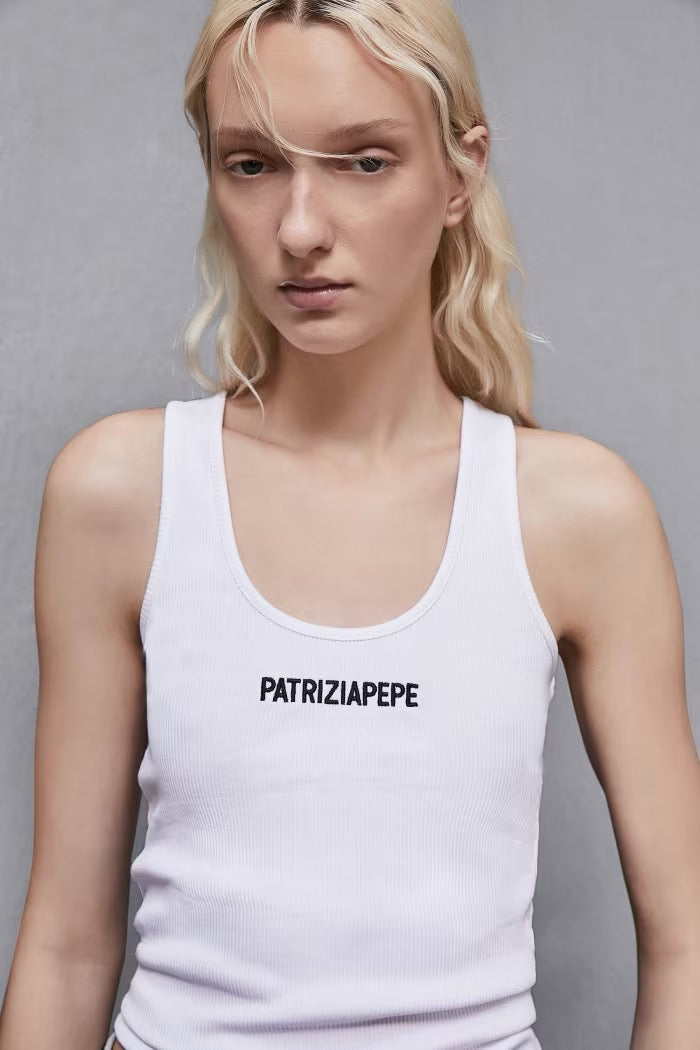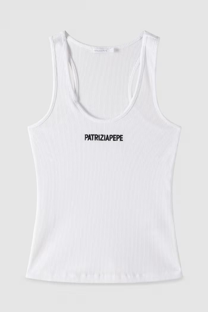Minimal e versatile, il top a costine in morbido jersey di cotone è un must-have tutto l’anno. Con scollo tondo profondo e logo ‘Patrizia Pepe’ sul davanti, offre infinite interpretazioni di stile. Perfetto in ufficio con completi sartoriali per un twist moderno, o con minigonna e sneaker SKIN per look casual.