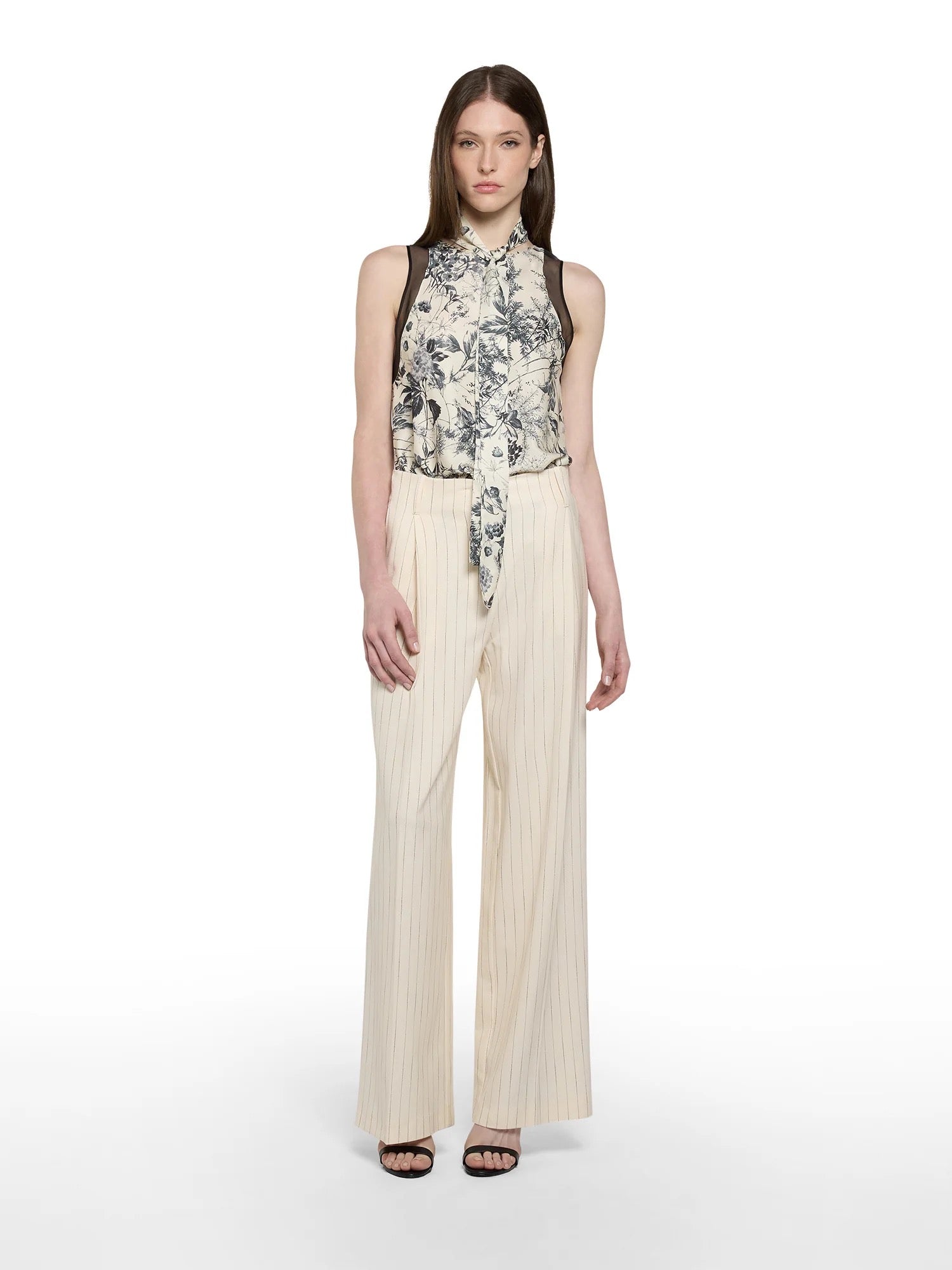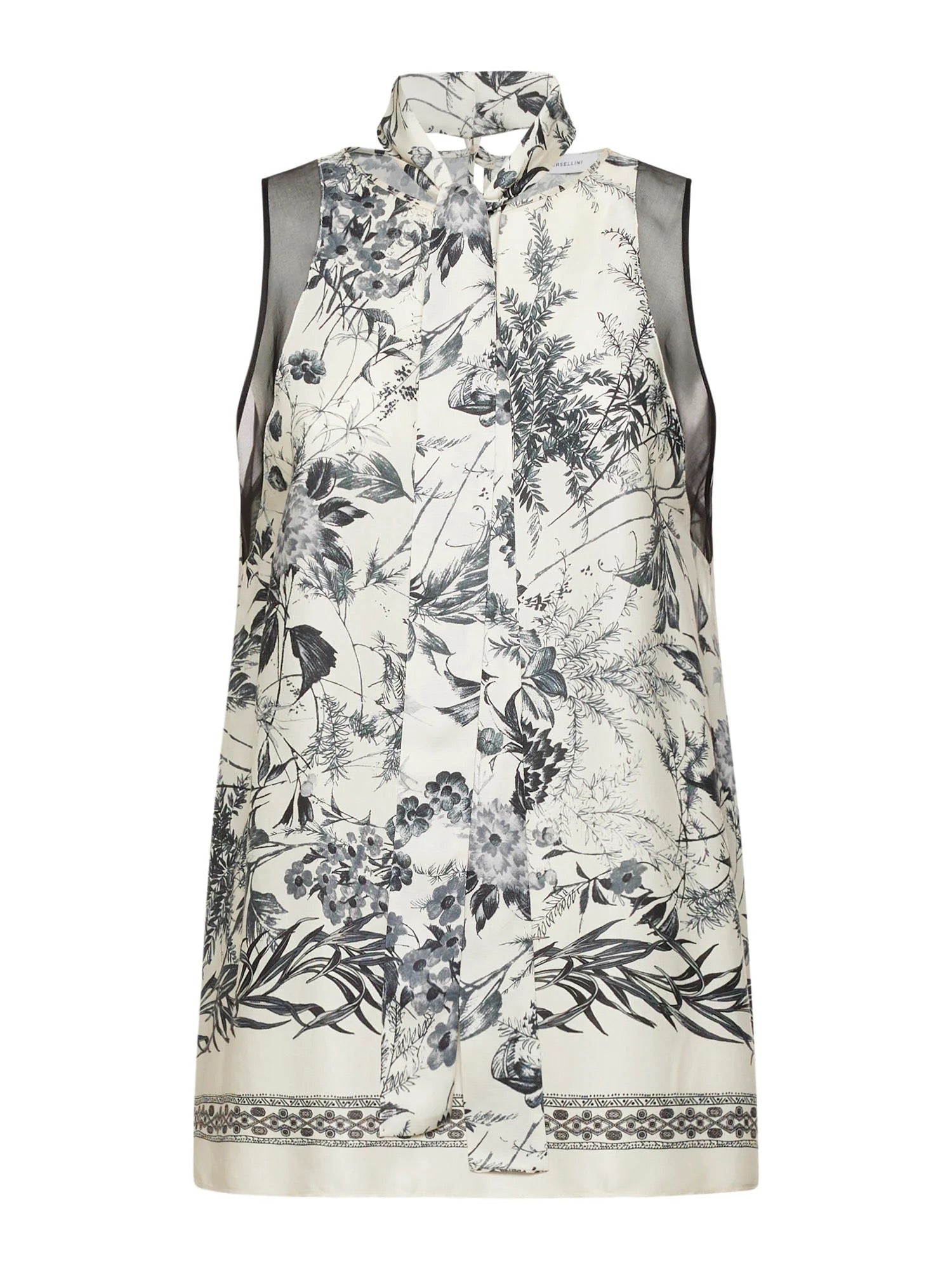 Top in stampa flower ink con sciarpa staccabile e inserti in organza nei giromanicaAltezza modella: 178 cm - Taglia indossata IT40