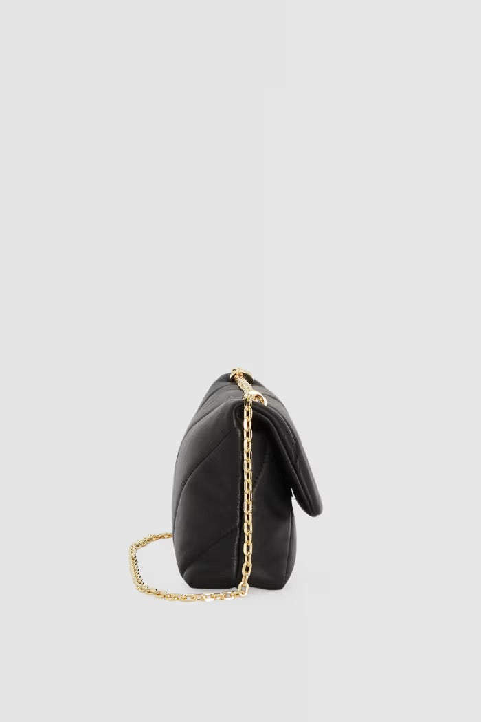 Non la solita tracolla: Patrizia Pepe rinnova i canoni estetici delle borse, aggiungendo pelle di capretto, trapuntature e una imbottitura soft per un effetto morbido. Fly dorata e tracolla in catena, per un tocco glam chic.